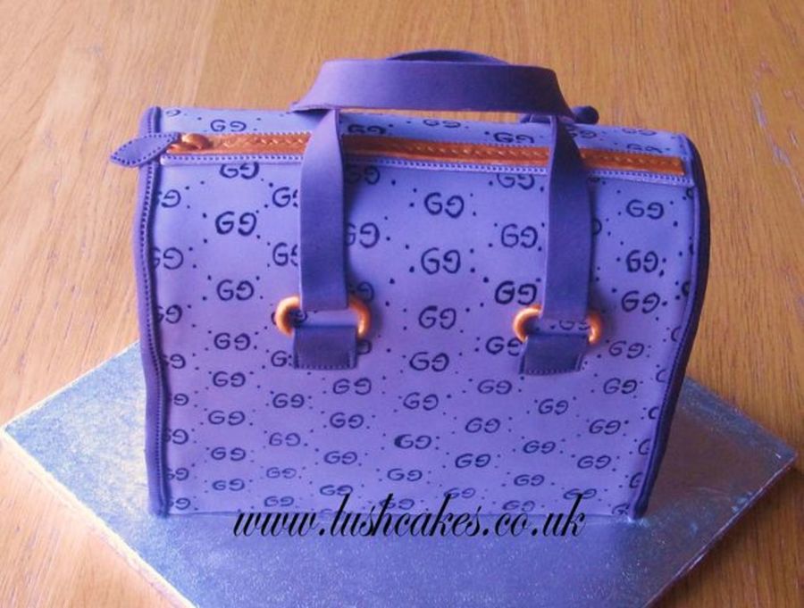 Yummy chocolate cake disguised as a Gucci bag! The 'G's were handpainted. Cake was carved from a 12" x 10" cake.