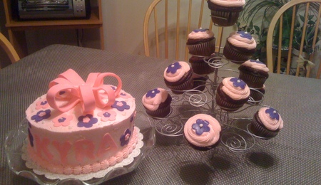 wasc with chocolate buttercream filling and fondant on top with flowers