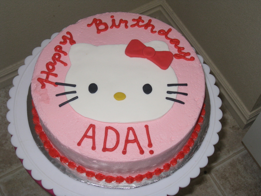 This was a last minute birthday cake for my friends daughter. Iced in buttercream, kitty in fondant.