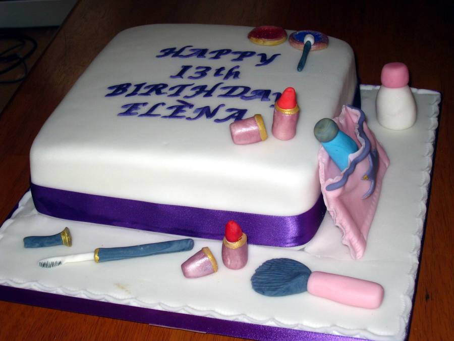 sponge with vanilla filling and sugar make up pieces on top for a 13year old girl