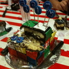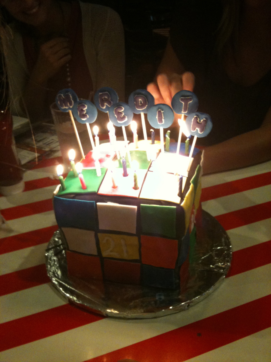 Chocolate and vanilla cake, layered and covered in fondant. Decorations are all fondant. Made for a 21st birthday.