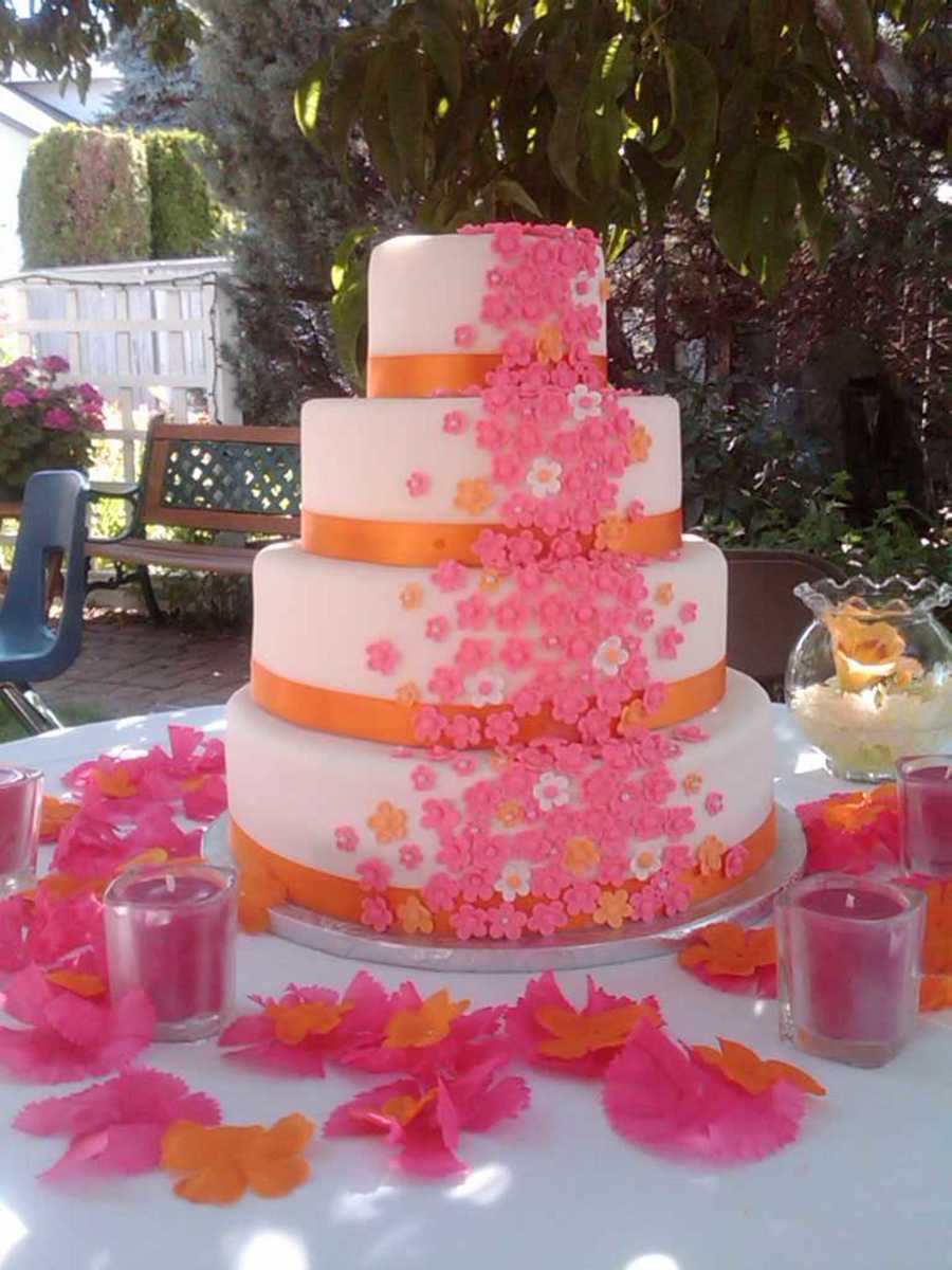 This is the second wedding cake that I have done . The sizes for this cake were 6,8,10,12 . I made a white cake and a vanilla cream centers