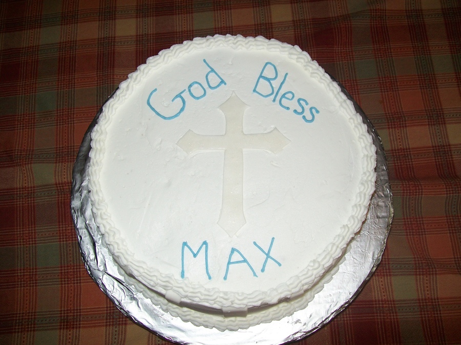 Baptism cake with BC icing, cross is made out of gum paste