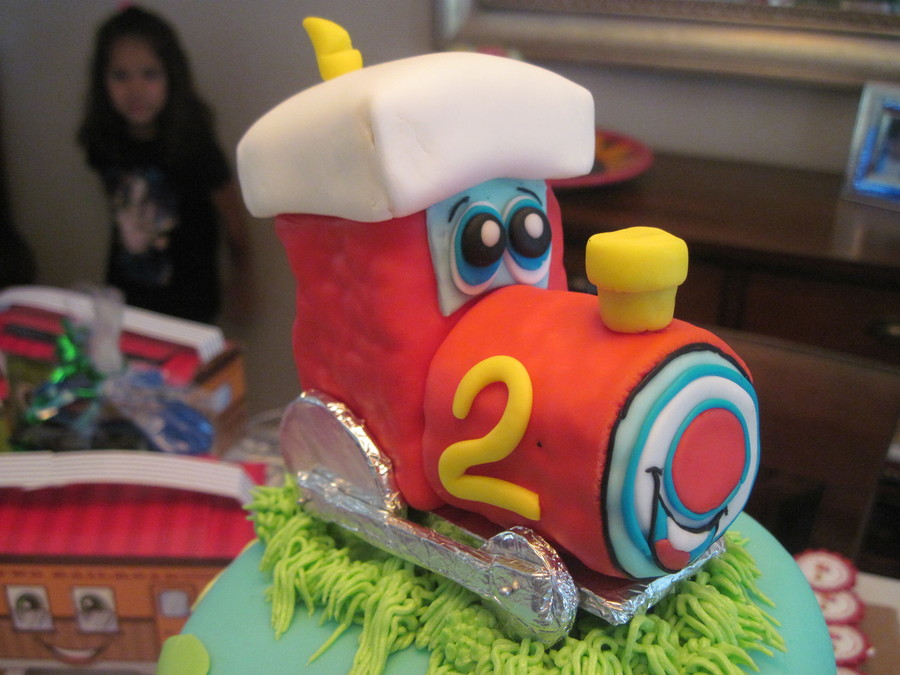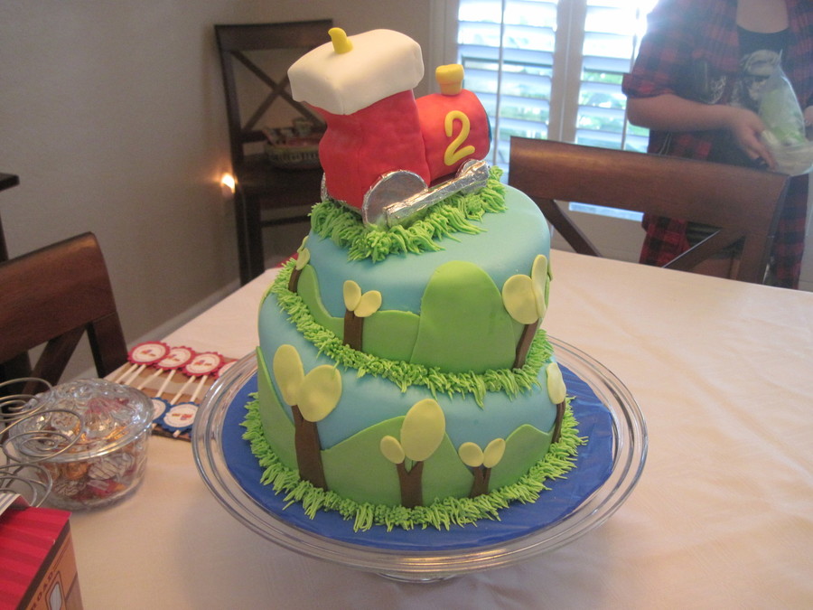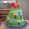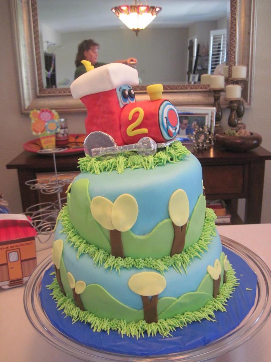 The colors and train on top matched the colors of the plates/napkins PERFECTLY. I was so excited when this came together! The train is RK/homemade Fondant.