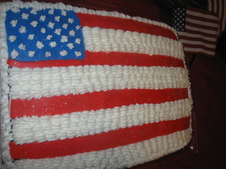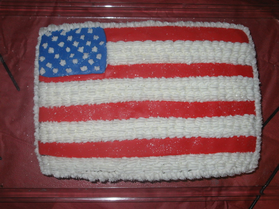 I made this cake for the 4th, the inside was layered red, white and blue. The red layer was red velvet, then white cake mix, the blue layer was a white cake mix dyed.