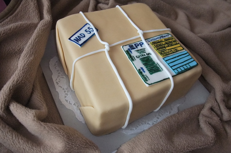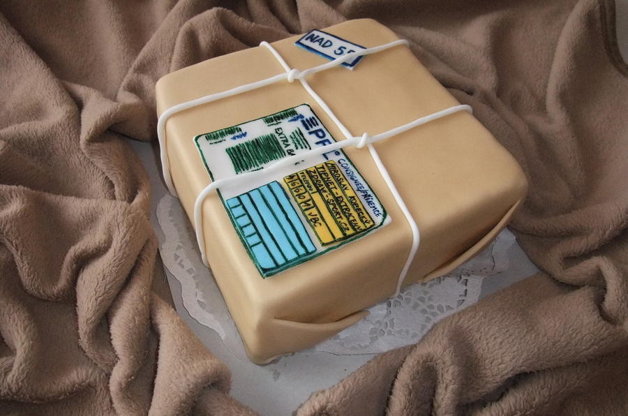 I had to make a cake for 55th birthday.. That guy owns internet shops so that I made a parcel :-)) All fondant, hadpainted label. TFL