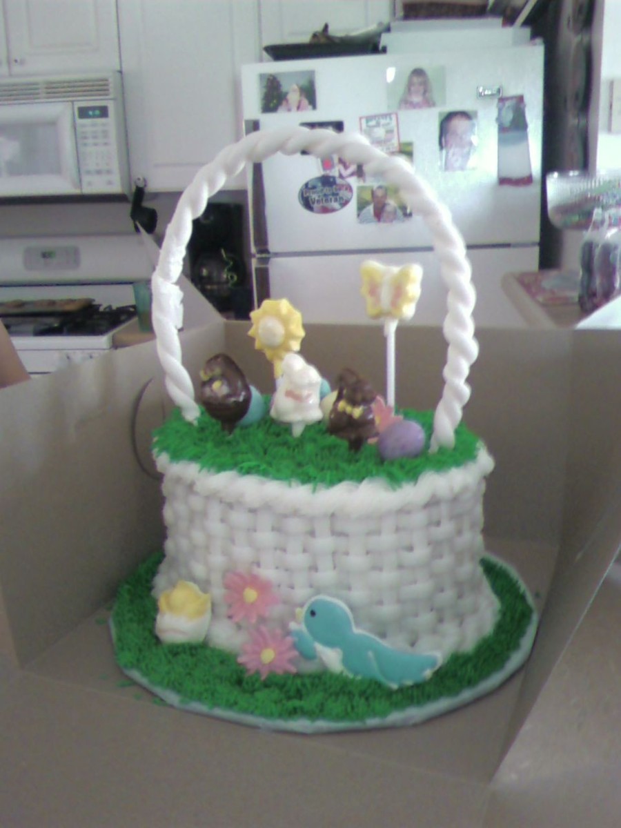 basketweave, grass tip w/ mixed greens for color, handle is fondant but would mix with gumpaste next time couldnt get it to stay up. my granddaughters loved it.