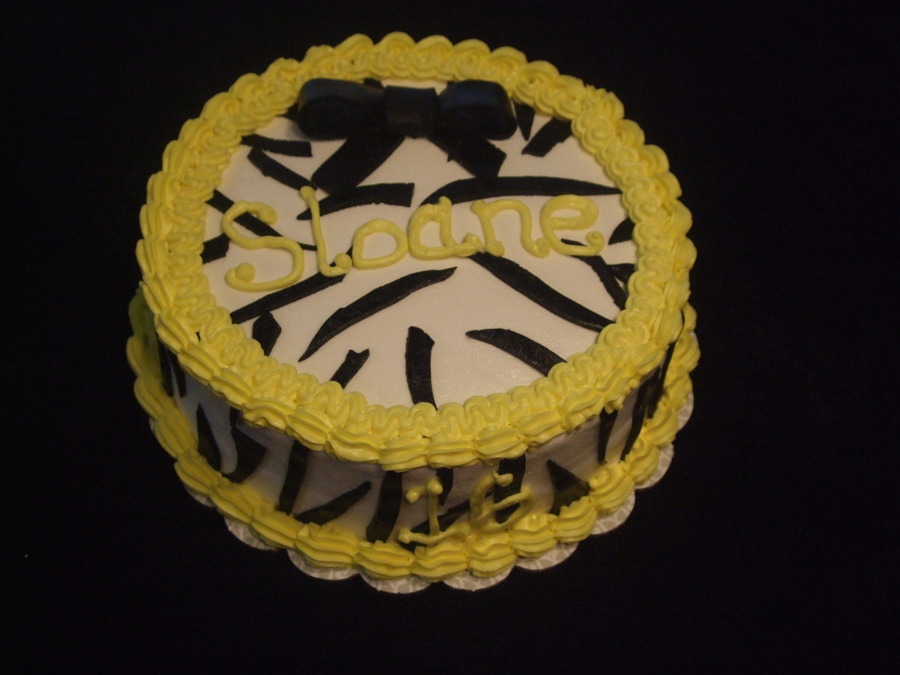 Buttercream icing w/black fondant zebra stripes & bow