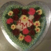 10" heart shaped engagement cake with royal icing flowers.