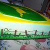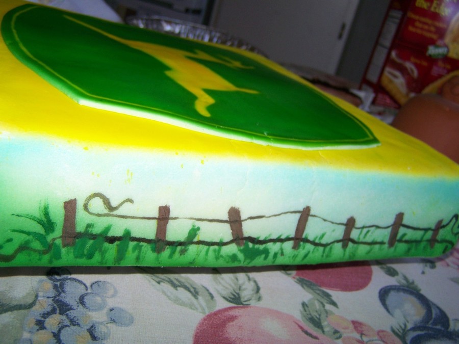 This was a fun and quick cake. Chocolate cake with easy bavarian cream in the middle and BC and MMF on the top. It was airbrushed and the fence and tractor was hand painted.