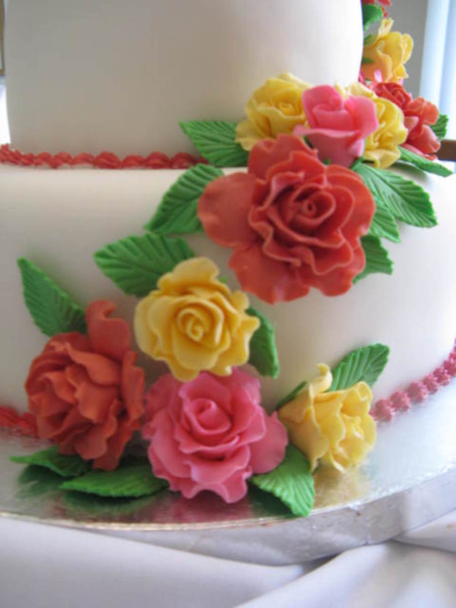 I made this for my final cake when I was taking the gumpaste course at Michaels. Not bad since I didn't know how to make any gumpaste flowers until I tooked this class, and it helped a lot, but I don't get cake orders with flowere :-) I make a lot of kids b-day cake, which I love :-)