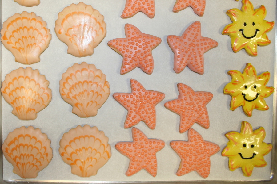 scallop shell, starfish and sun cookies