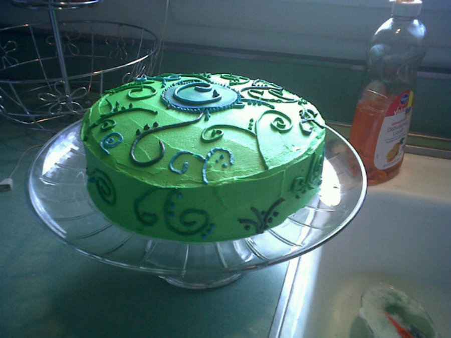 My best friend is coming to visit today, she called me a few days ago and asked if I'd make her a cake for her birthday. OF COURSE!!! Her favorite color is green so here it is. First time with scroll work and tie dyed fondant. I'm pretty happy with it. TFL!!