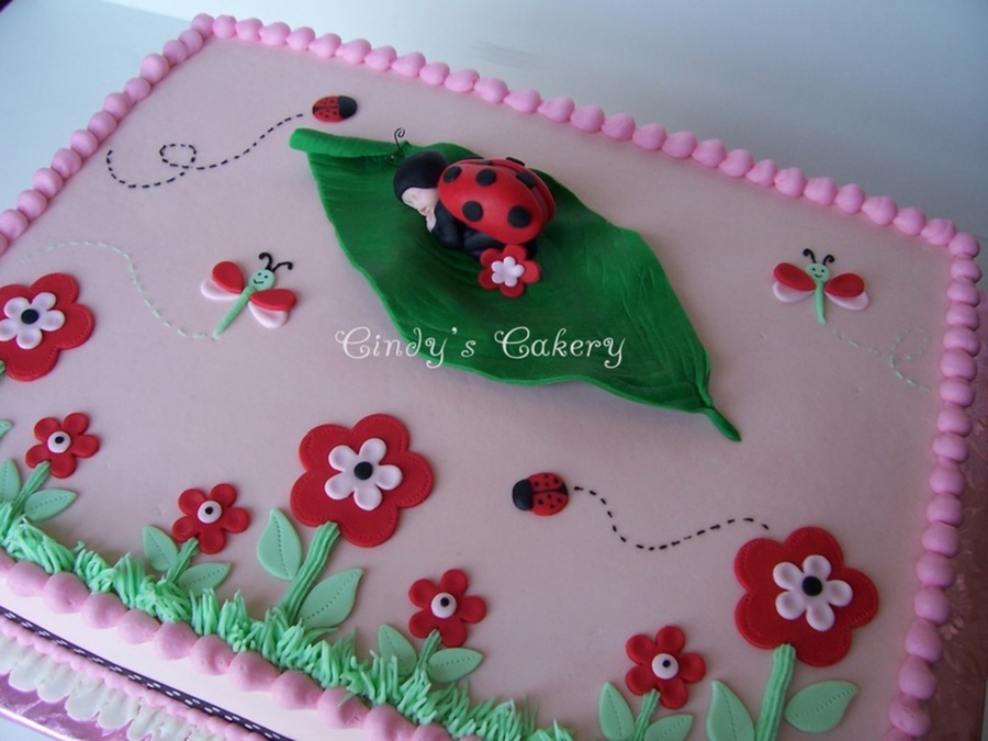 11x15 iced in buttercream with fondant decorations and gumpaste topper. Designed to match baby's room decor. TFL!!