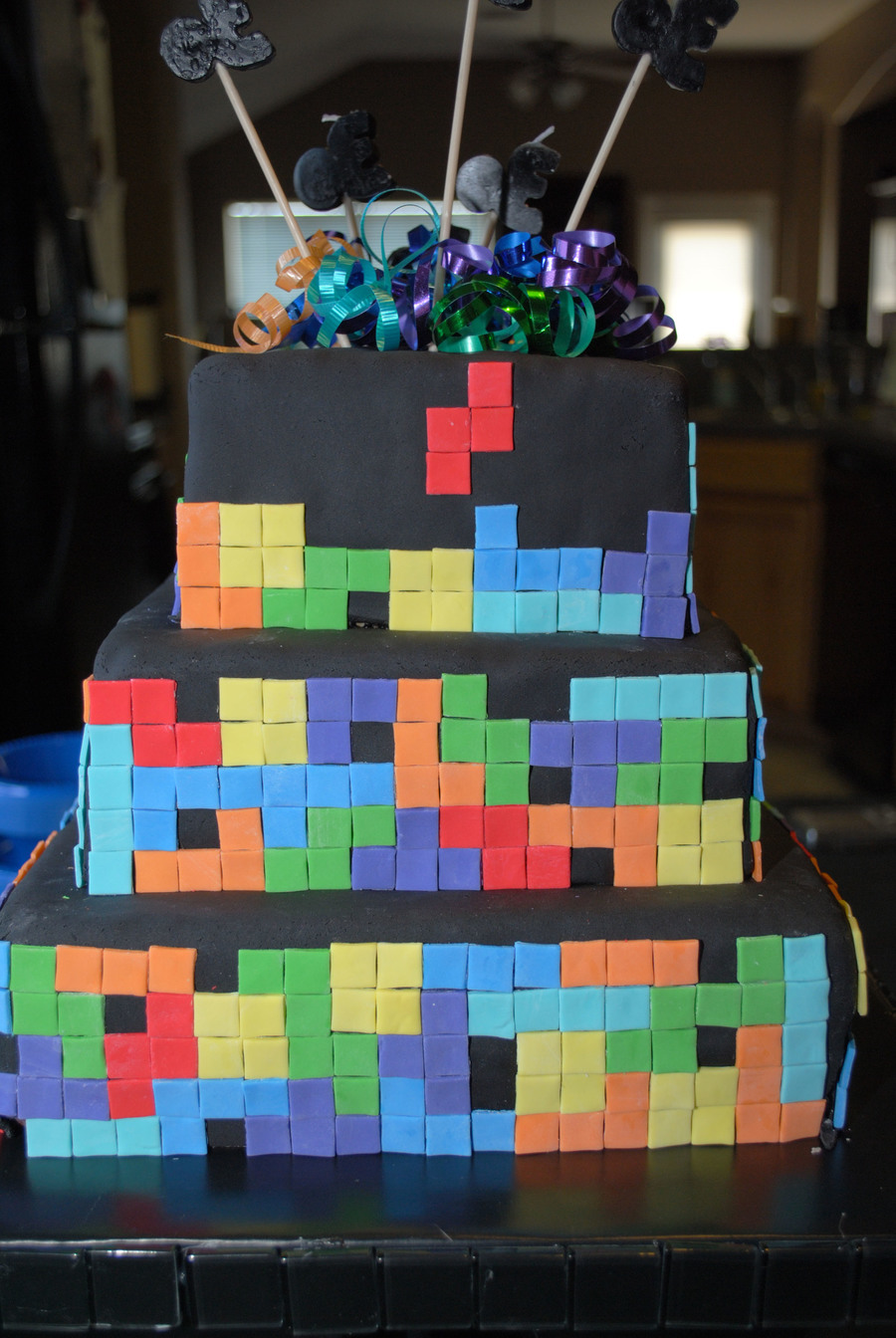 Top 2 layers are Champagne Cake with Strawberry Filling the bottom layer is Chocolate Chambord Cake with Raspberry Filling. This cake took the longest out of all the cakes I have done but I enjoyed making it the most. The layers are 6in, 8in, and 10. Thanks to my husband for helping make the squares.