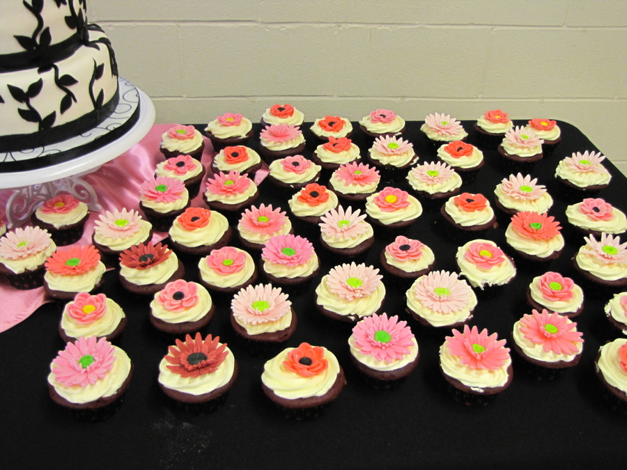I was crazy enough to tackle a wedding cake for my first cake! Made as a gift for a friend. I used all MMF for cake and cupcake flowers. Topper is real flowers.
