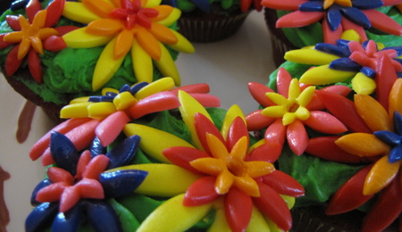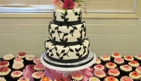Crazy enough to try a wedding cake for my first cake!! All MMF with MMF flower cupcakes.