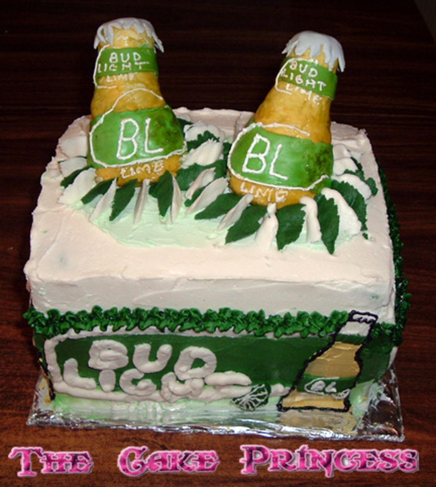 bud light lime cake. everything on this cake is edible, including the bottles