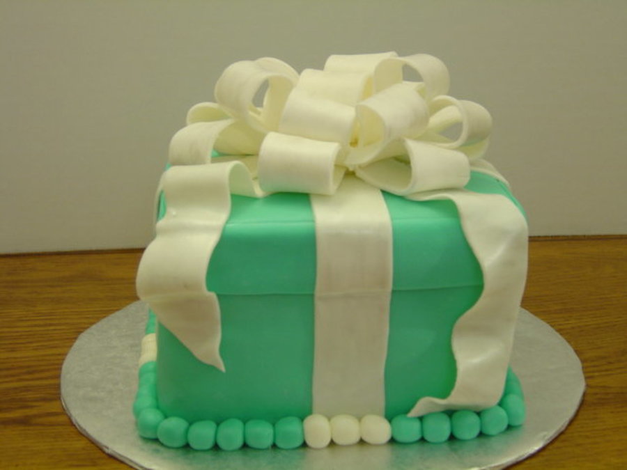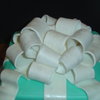 My first fondant covered cake. The cake is a chocolate cake filled with butter cream and covered in fondant. The bow is made from a fondant / gumpaste mixture.
