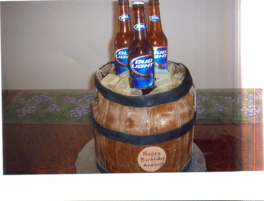 My First Beer Barrel I've been wanting to try this for so long, what better reason then my son's 30th b-day! Thank-You to all the cc for the great pictures and advice on how to make, and a Great Big Thanks to Alery for ALL your Help! 3-10' round,MMF, bottles & ice sugar/cornsyrup. labels and cap from real bottles.