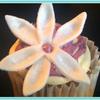 Blueberry buttercream cupcakes. topped with a gumpaste flower.
