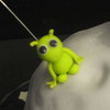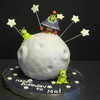 this was my own birthday cake I made it for myself :) (I collect aliens, i'm weird i know) the cake is made with the wilton ball cake mold. It is covered with marshmellow fondant. I used the inspiration of many fabulous other cakes on this website. The crators are created by making fondant snakes formed in a circles underneath, then once the top layer of fondant is ontop I pushed my knuckle into the middle of those cirlces creating the major crators. The smaller crators are just formed by me pressing my knuckle into the fondant. The characters are made with fondant as well. Any other questions just post!