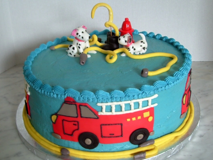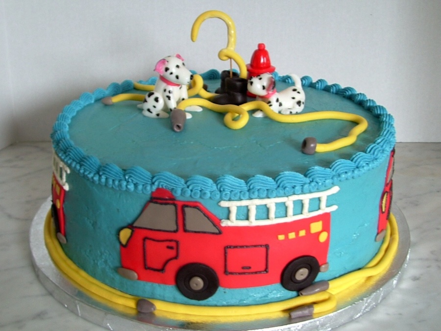 3 year old's birthday cake. This boy gets dressed as a fireman every day. Chocolate cake with buttercream filling.