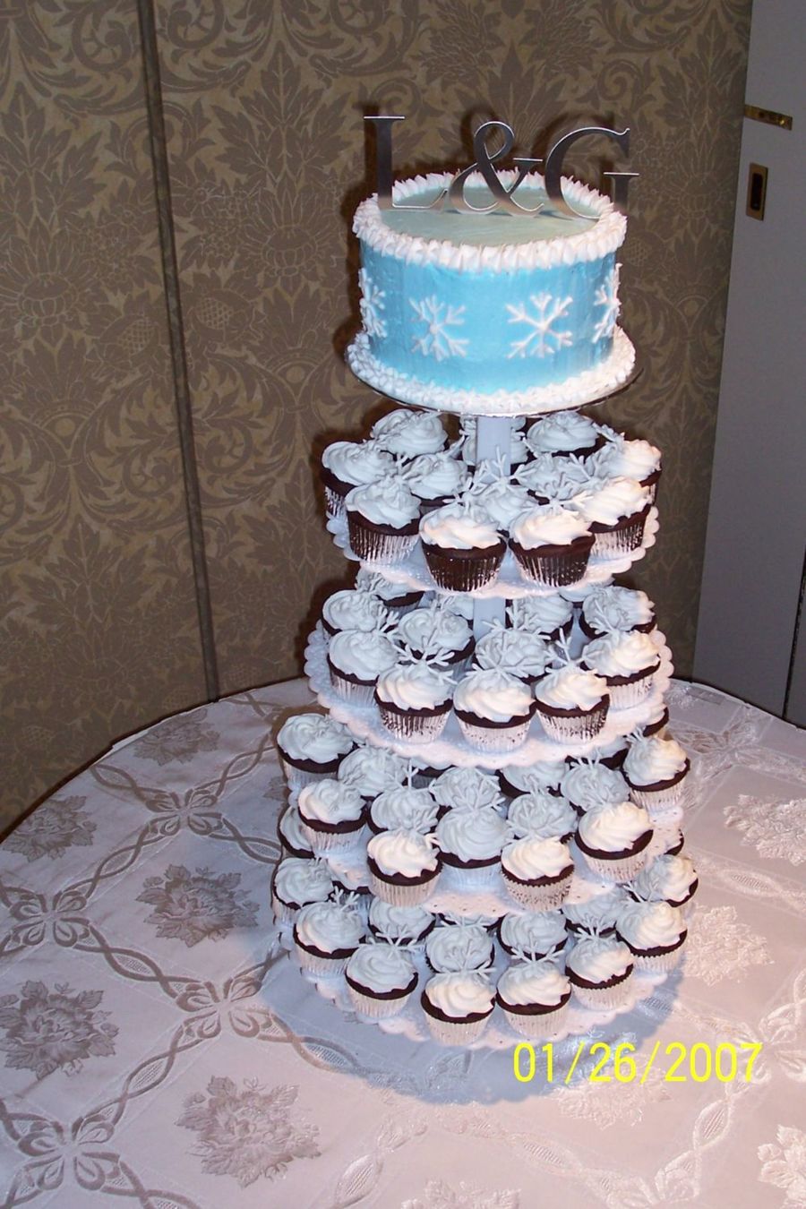 NewbeeBaker on 22 Apr 2007 , 4:55pm Wow, that is one classy looking set up! Your cake is just beautiful and the cupcakes look just a great, Awesome job!