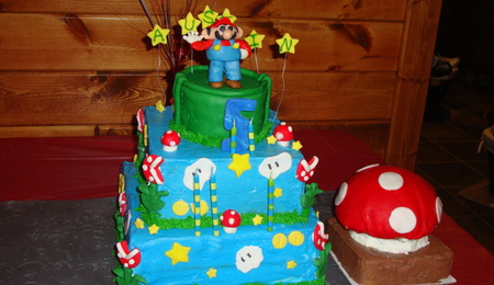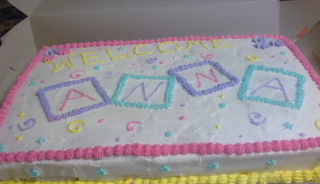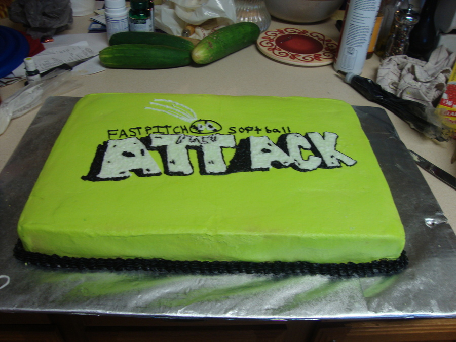Sheet cake with buttercream frosting and decorations. My 16 year old daughter looked at her softball jersey and free handed logo on cake.