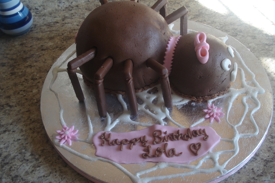 Chocolate spider. Chocolate fondant. Legs are made out of chocolate orange candy sticks. I used the Wilton ball pan for the body and the head is just a giant cake ball that I made out of the crumbs from two 4 inch cake layers.