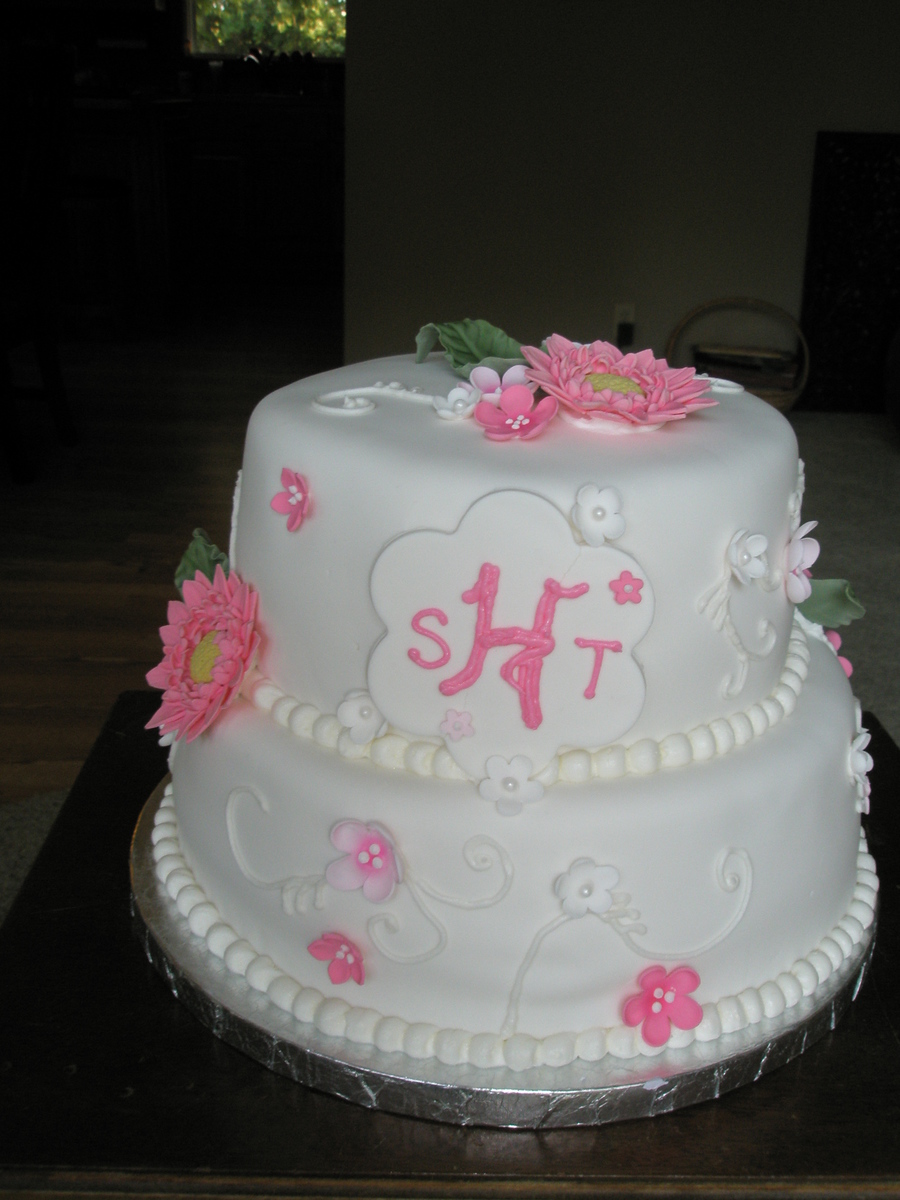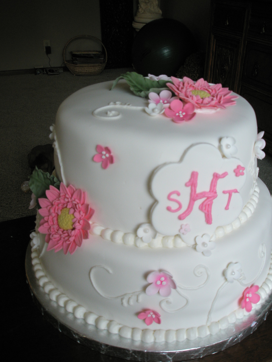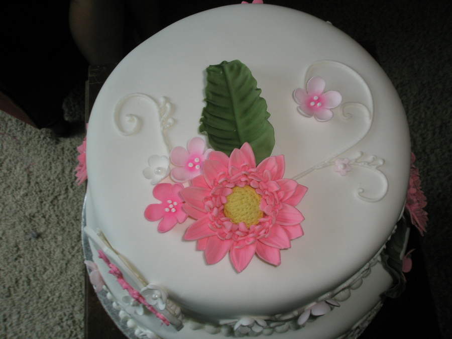 Fondant wedding shower cake with gumpaste gerbera daisies