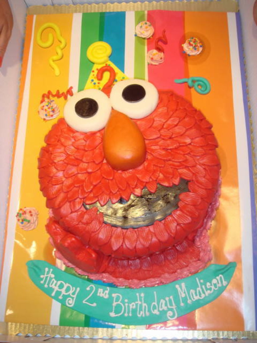 I think I saw the original Elmo on here~ thank you to whoever made it! This one is a 10 inch round chocolate chunk and white almond cake, frosted with french buttercream and MMF.