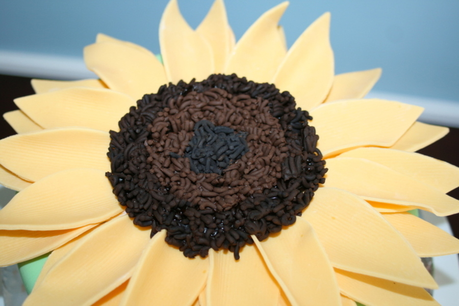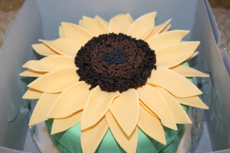 This was a chocolate cake with raspberry jam and choc icing. Fondant on the cake and the flower is half/half fondant and gum paste. My customer wanted a sunflower cake for her daughter's birthday. I loved the cake by "Kitagrl" and thought I would give it a try. I have limited experience, but thought I did pretty well. Thanks to my niece for helping. Thanks for looking.