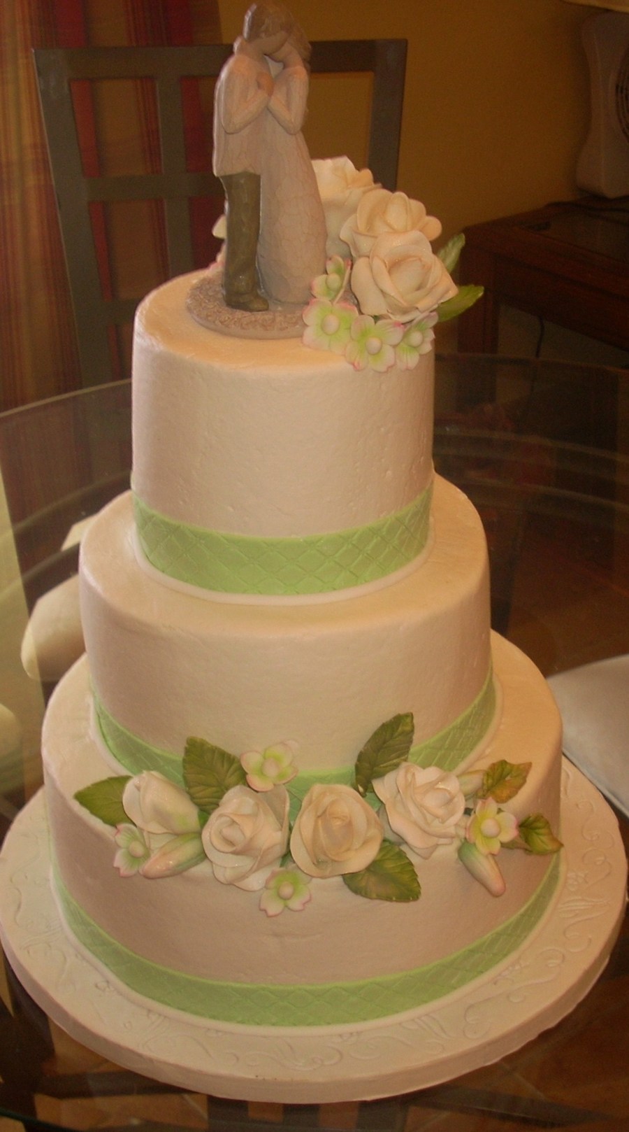 3 tiered wedding cake, with gumpaste roses