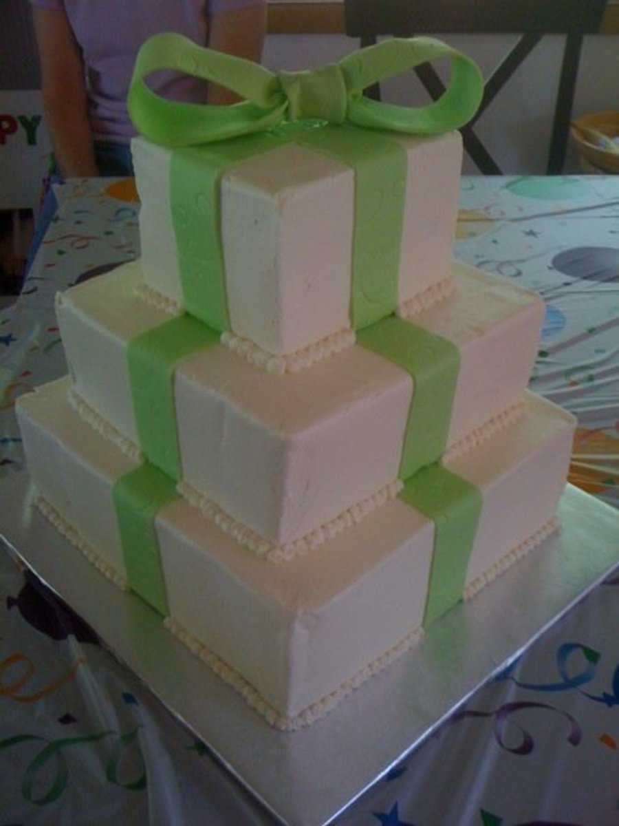 3 tiers - vanilla, choc, vanilla; covered in BC with Fondant/Gumpaste bow. Did it on very short notice for friends, and was completely underpaid for my time. Lesson learned! At least the cake was delicious! :)
