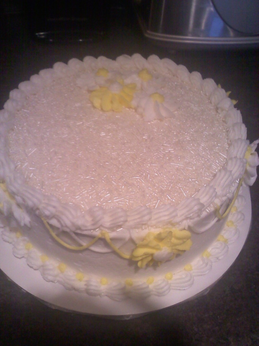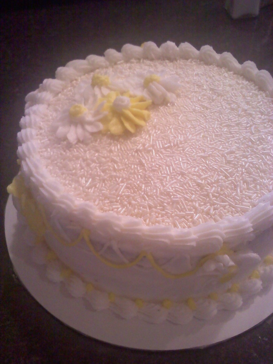 I made this cake for my husbands mom when she came to visit.... Its chocolate with buttercream, i struggled with the daisy's probably because it was 110 degrees out that day! But it tasted good! TFL