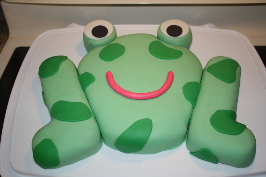 My daughter had a froggy theme for her 3rd birthday party this year. I had fun making this froggy cake for her! It's chocolate cake covered with fondant. Yum!
