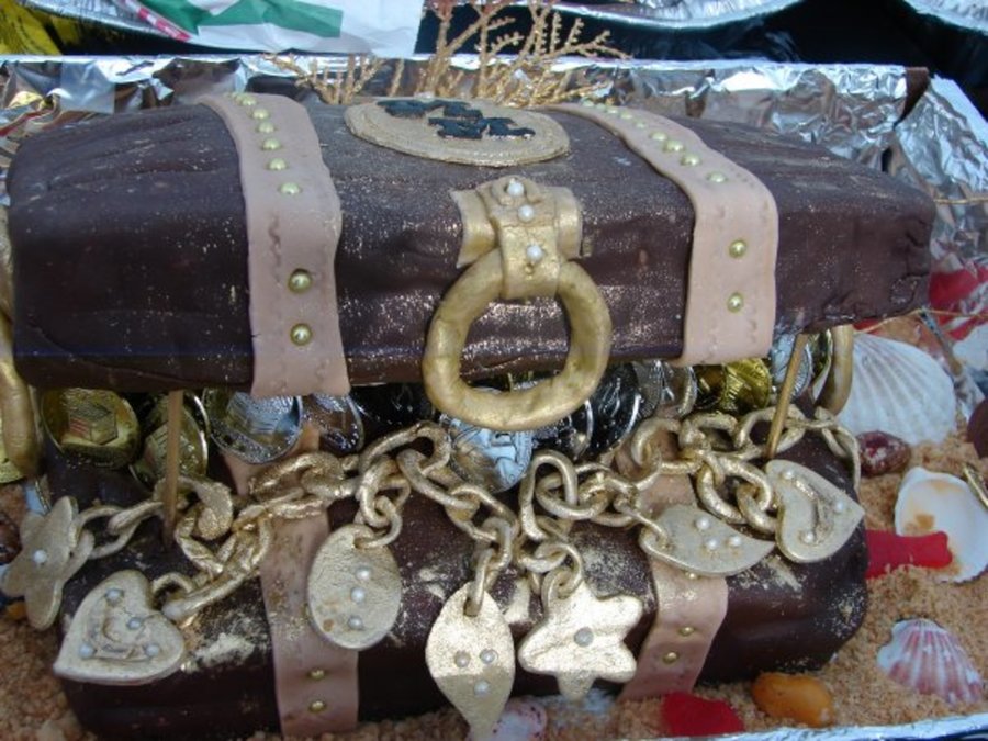 My first time working with fondant - the poka dot cake. The treasure chest was my second attempt. Everyone thought I did a wonderful job; however, I do not know if I can duplicate the Treasure chest; that was my momet of glory.