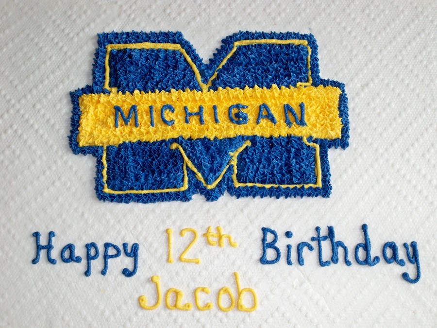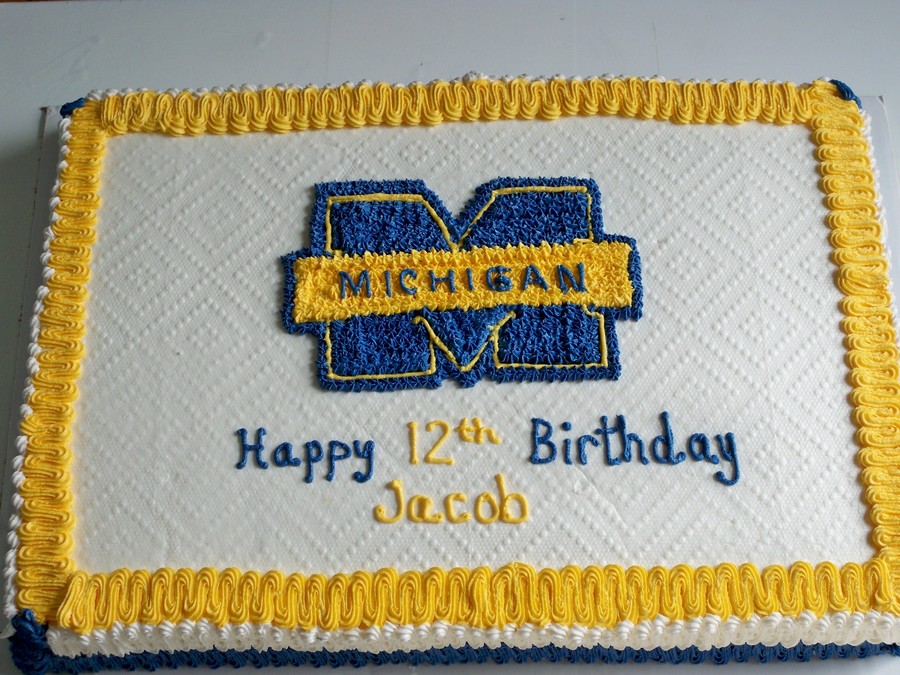 This was a last minute cake for a 12 year-old. It's a chocolate cake with Extra Buttercream Frosting. Go Blue!