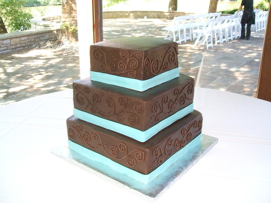 All buttercream, fondant ribbon, first time piping all over the cake. Need to work on the sharp corners more.