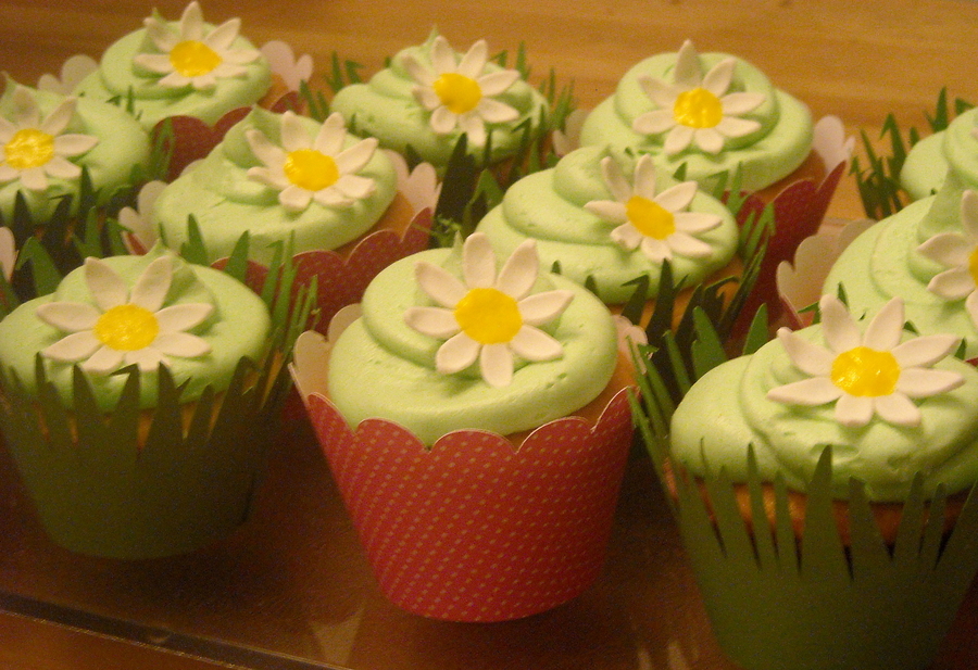 These are classic yellow cake with buttercream and gum paste daisies. Trying out my new Cupcake Wrapper Cricut cartridge.