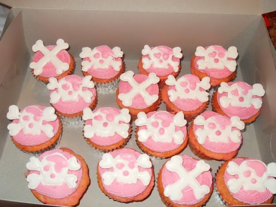 The cupcakes are topped with buttercream and the skulls and crossbones are made from colorflow icing.