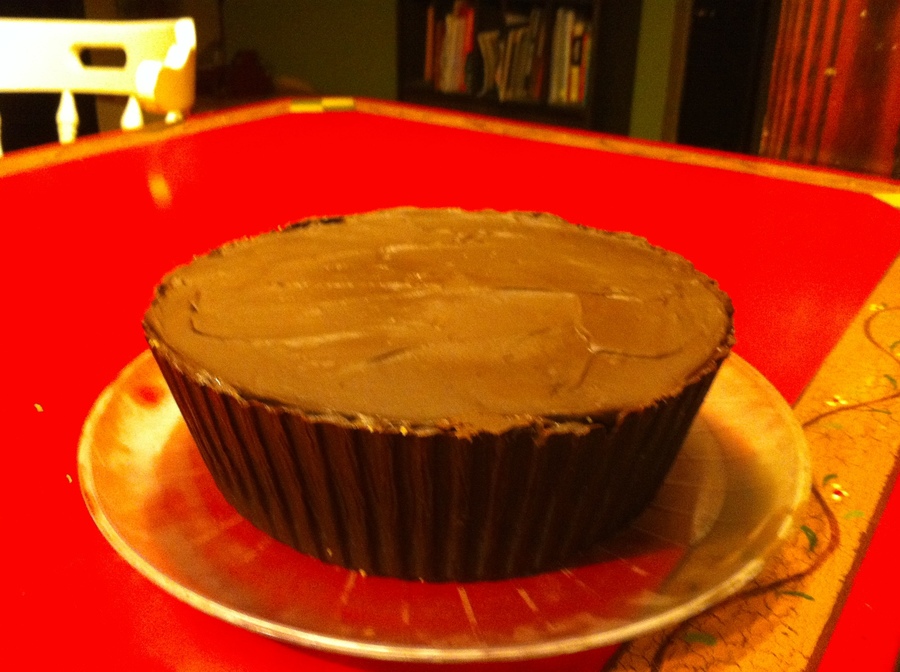 Molded chocolate with candied peanut butter filling and a chocolate cake in there too! This cake was gone in about 4 minutes, no joke!