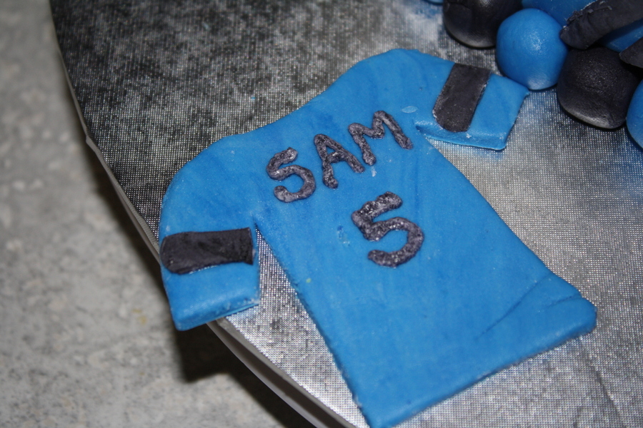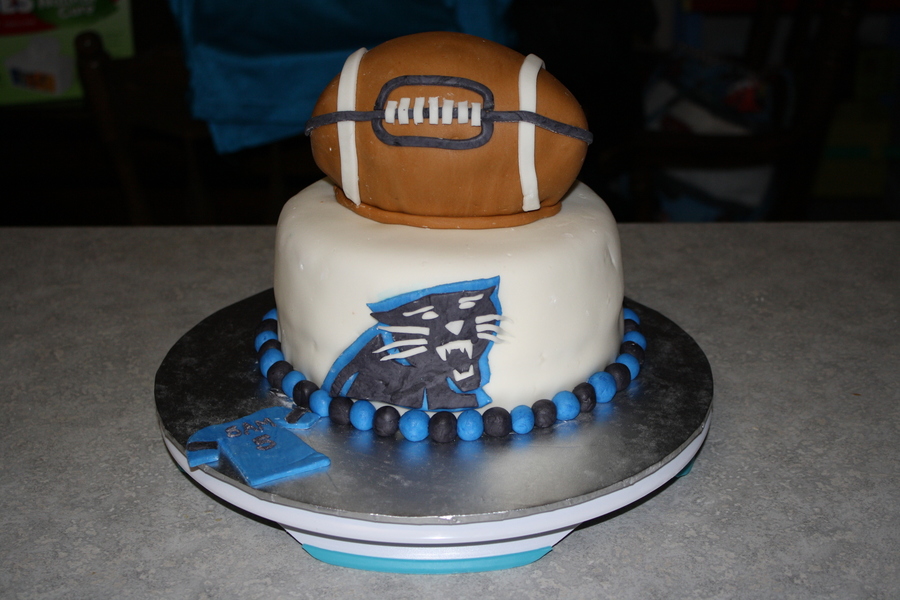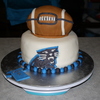 2 layer 8" topped with a 2 layer 6" carved into the shape of a football.
