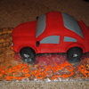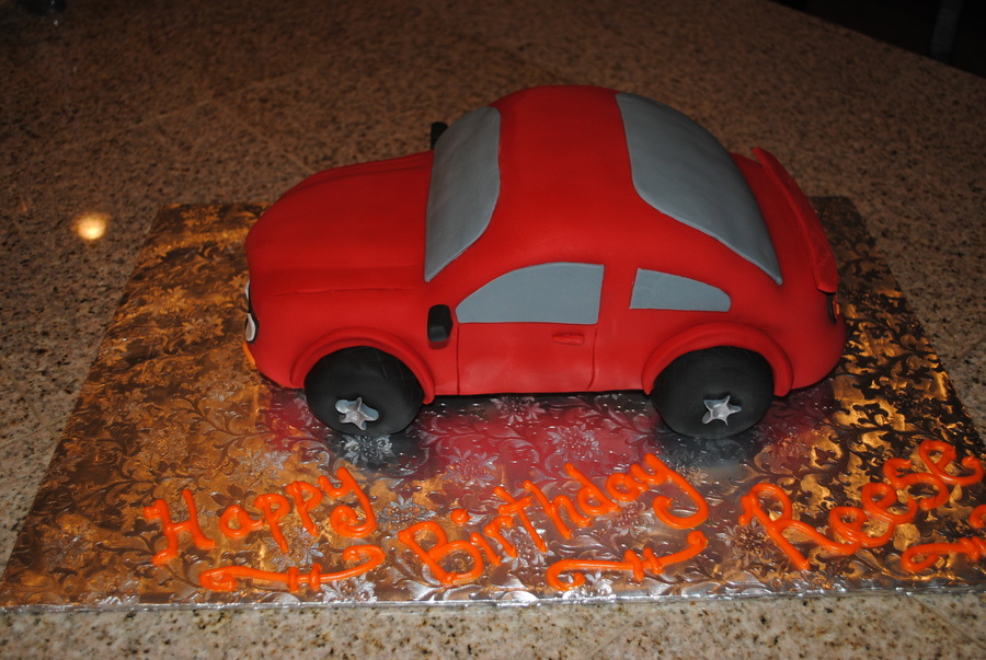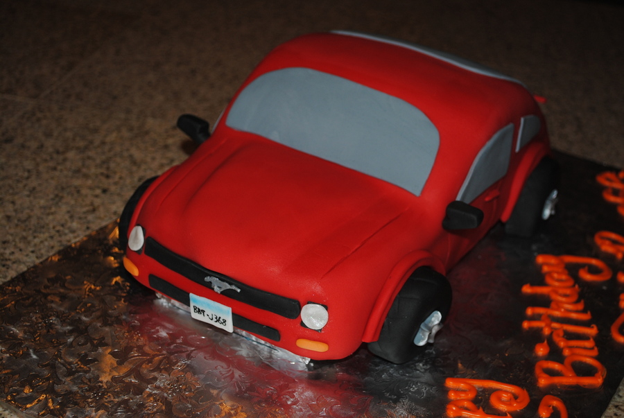 My attempt at a Ford Mustang. Was not that happy with it, although the customer loved it. Should have carved more off the top. Very nervous with this car cake. Took me way to long. Got the Mustang symbol right the first time around.