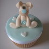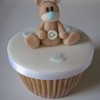 7" vanilla sponge top cake with vanilla b/c and raspberry jam. Covered in fondant with gumpaste accents. This was displayed with matching cupcakes. Thanks for looking.