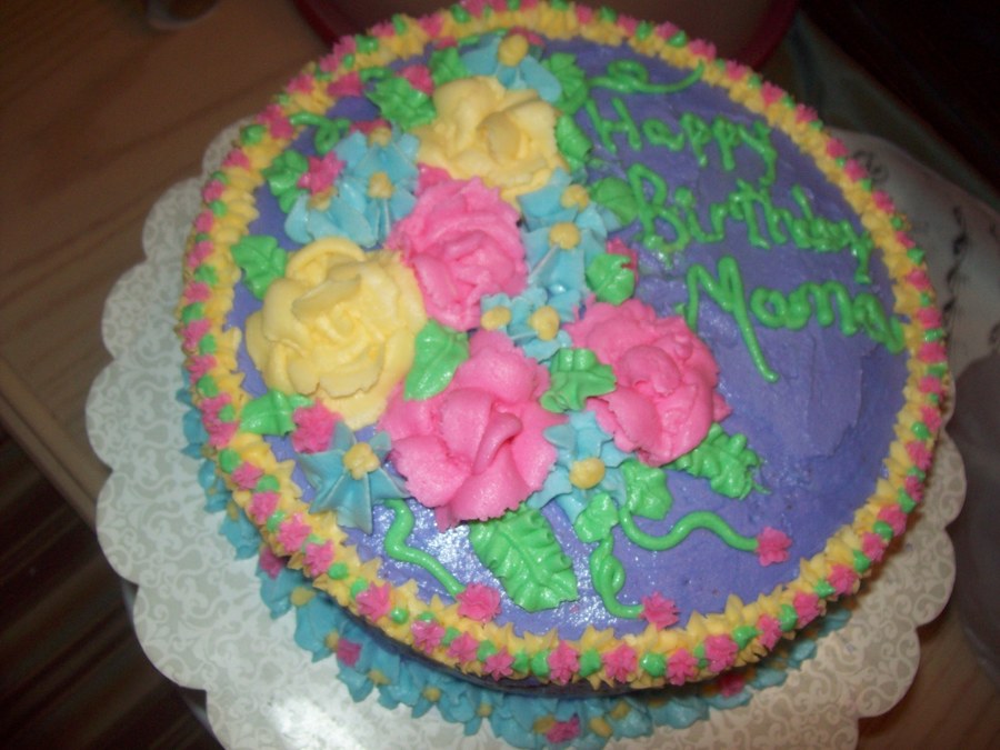B-day cake for friends mom, vanilla cake with vanilla buttercream frosting
