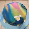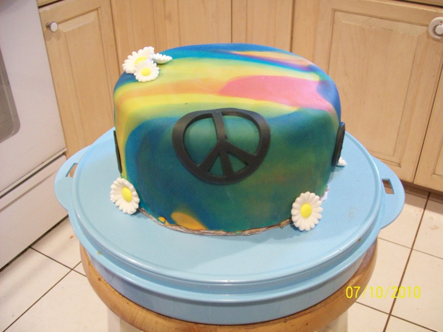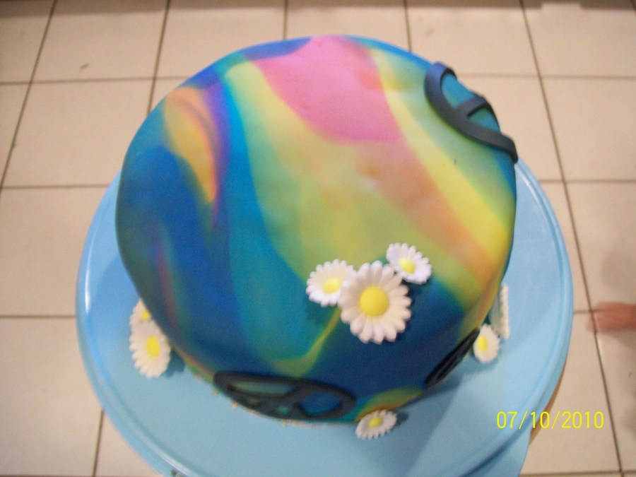 Tie-dyed fondant with candy daises & fondant peace signs.