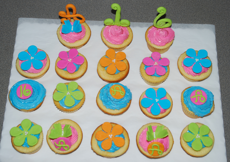 Vanilla buttermilk cupcakes with fondant decorations and italian meringue buttercream.