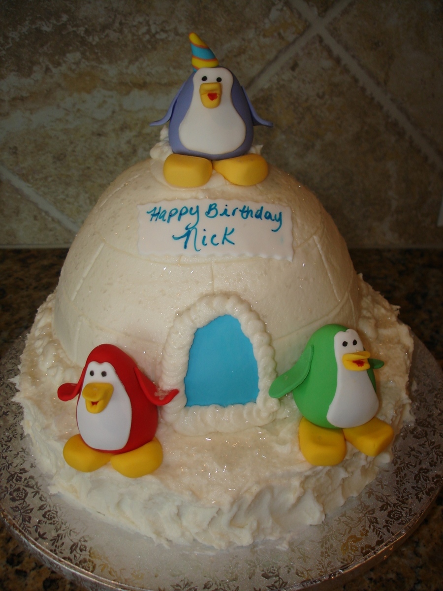Club Penguin Igloo cake. Buttercream with fondant penguins. Inspired by the computer game toys, and CC cakes, especially one from Kay_NL. TFL!